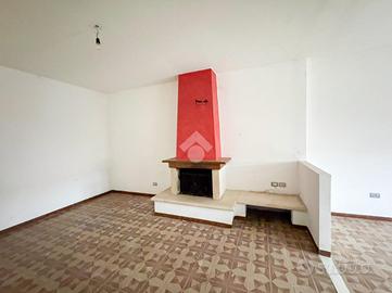 Abitazione spaziosa composta da 7 vani, tra cui zona giorno e cucina con camino, camere da letto, servizio igienico e una soffitta al secondo piano. La scala interna collega le due unità, con un unico ingresso.