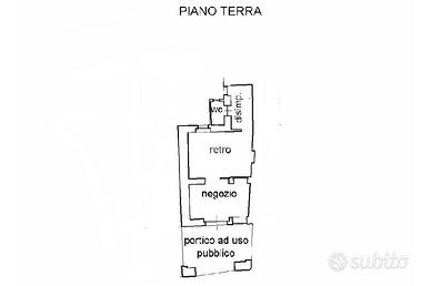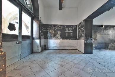 Il negozio si sviluppa al pian terreno di una piccola palazzina priva di spese condominiali. Dotato di vetrina con affaccio sotto i portici, il locale è costituito da due vani, con un'altezza minima di 3 metri e un'altezza massima di 3,5 metri. L'ingresso è più piccolo e accogliente, mentre il retro, più ampio e funzionale, è ideale per essere utilizzato come area operativa o spazio di lavoro. Quest'ultimo vano, il cui soffitto è decorato da una preziosa volta a padiglione, è dotato di canna fumaria, rendendolo ideale per attività che richiedono l'utilizzo di apparecchiature specifiche legate alla preparazione alimentare. Completano la proprietà i servizi igienici, preceduti da un pratico antibagno.