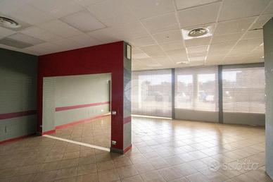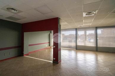La soluzione proposta in affitto possiede una superficie totale di 90 metri quadrati circa, di cui 5 metri quadrati adibiti a magazzino, disposti interamente al piano terra lungo un unico locale open space completo di tre servizi igienici privati, a norma disabili e con ventilazione meccanica. Internamente la struttura raggiunge un'altezza di circa 2,70 metri, data la presenza di controsoffitto, e presenta tre ampie vetrine fronte strada, complete di saracinesca motorizzata, le quali rendono l'ambiente luminoso e donano maggiore visibilità all'attività proposta. Il locale commerciale, a norma per l'accesso disabili, dispone di riscaldamento e condizionamento ambedue autonomi, nonché d'impiantistica elettrica e d'illuminazione; completano la soluzione le luci d'emergenza e l'aspirazione fumi di cui gode l'immobile. La proprietà risulta essere cablata e possedere comodo doppio ingresso.