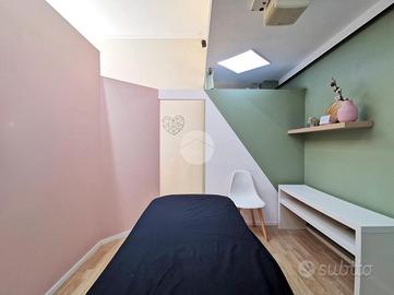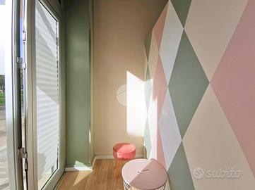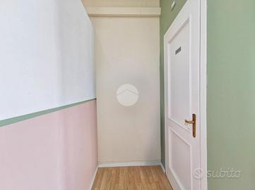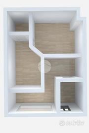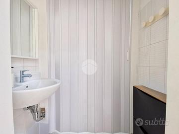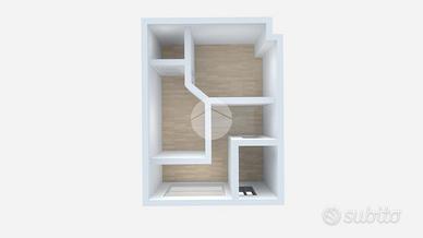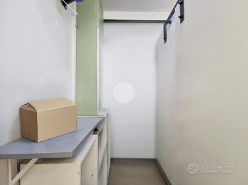 Completano una soluzione curata e moderna: la pavimentazione in laminato effetto parquet, gli abbassamenti con faretti, lo scaldabagno, la serranda motorizzata e l'aspiratore presente nel secondo ambiente.