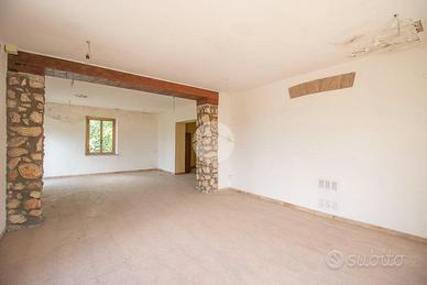L'immobile che misura 189 mq si compone di: una stanza d'ingresso con camino a vista, una cucina, due grandi sale e due bagni.