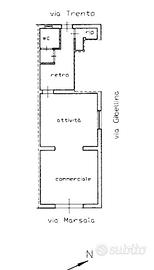 Il locale si trova al piano terra e si estende su una superficie commerciale di circa 59 mq. Sono presenti 2 entrate, una anteriore e una posteriore per l'accesso al retro negozio.
