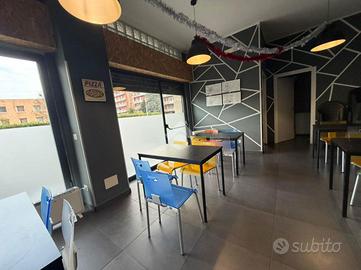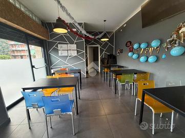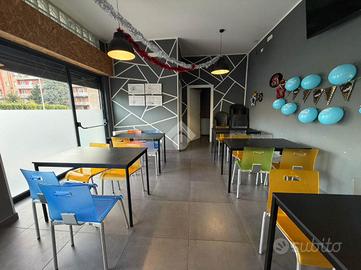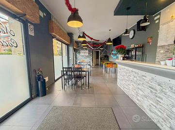 Il negozio, di circa 120 metri quadrati, è composto da un ampio open space e da una zona dedicata alla cucina. Le tre grandi vetrine garantiscono un'ottima luminosità naturale e un'ottima visibilità su strada.