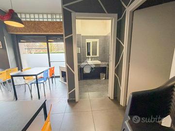 Il negozio, di circa 120 metri quadrati, è composto da un ampio open space e da una zona dedicata alla cucina. Le tre grandi vetrine garantiscono un'ottima luminosità naturale e un'ottima visibilità su strada.