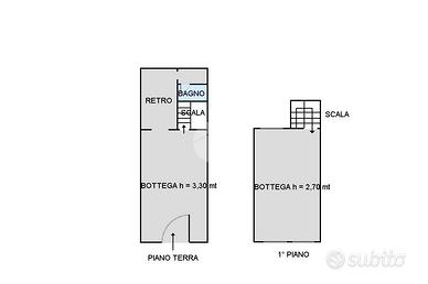 L'ingresso avviene dalla Via Palermo, si accede all'area vendita illuminata da un'ampia vetrina su strada ed al piano terra è presente un retrobottega ed il servizio igienico; al primo piano a cui si giunge attraverso una scala interna, si sviluppa un secondo locale sempre a servizio dell'attività commerciale, dotato di tre ampie finestre. Le condizioni interne del locale sono buone. Dotato di agibilità.
