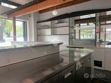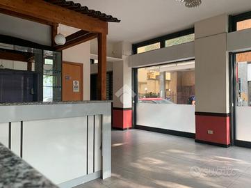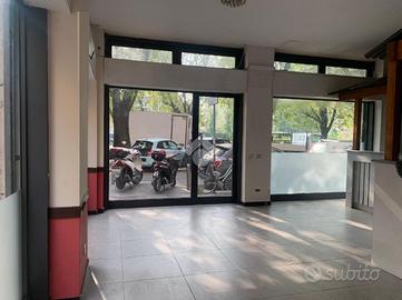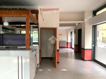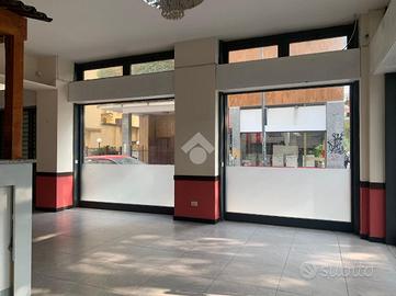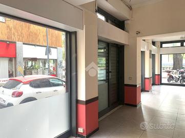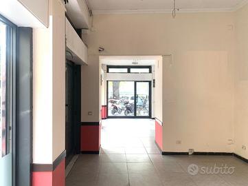 IMMOBILE angolare, è dotano di 6 ampie vetrine. Internamente è alto mt 3,80 e si presenta in buono stato ed è composto da un unico locale con piccolo retro, doppi servizi di cui uno a norma disabili. Al piano seminterrato vano cantina di mq. 15ca. di proprietà. Il riscaldamento è centralizzato e lo stabile è servito da portineria tutto il giorno.