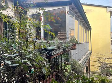L'IMMOBILE è un cielo terra con canna fumaria indipendente. Il locale è disposto su due livelli, il piano terra è composto da ingresso su ampia salone, tre servizi di cui uno a norma disabili. Una scala interna collega il primo piano dove troviamo un'altra ampia sala, locale cucina con canna fumaria e un ampia veranda chiusa. Il riscaldamento e il condizionamento sono autonomi.