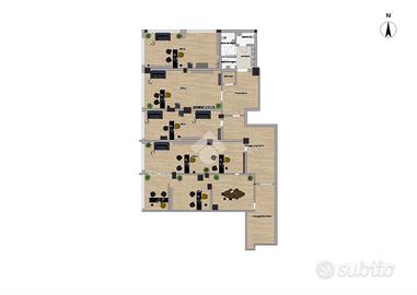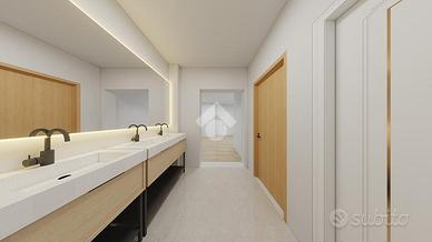 Piano terra composto da ampio open space controsoffittato, ideale per qualsiasi attività commerciale e/o espositiva, attività creative, disimpegno, locale archivio e servizi.