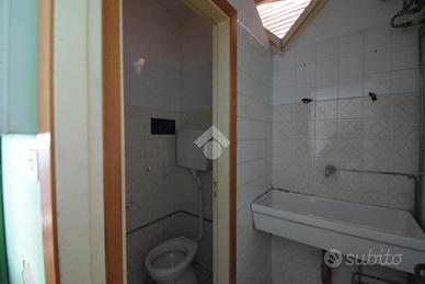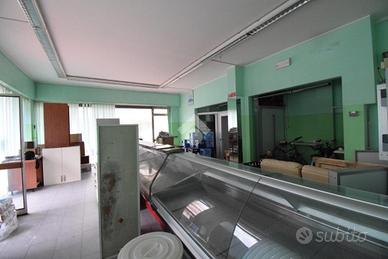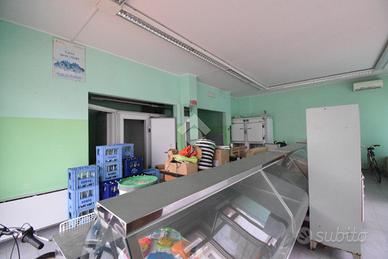 Nel retro del locale, attualmente presente attrezzatura per magazzino alimentare con impianti e servizi.
