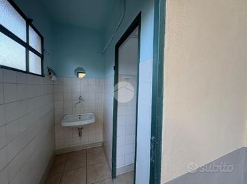 Il locale è composto da due ambienti: uno con vetrina su strada, ideale per accogliere clienti o esporre prodotti, e uno sul retro con soppalco, utile come magazzino o spazio aggiuntivo.