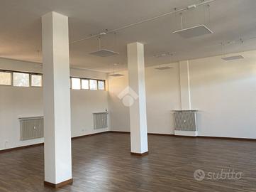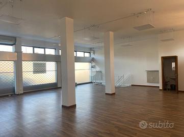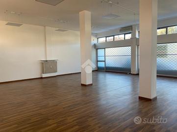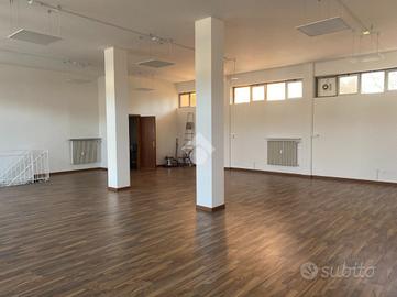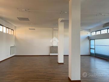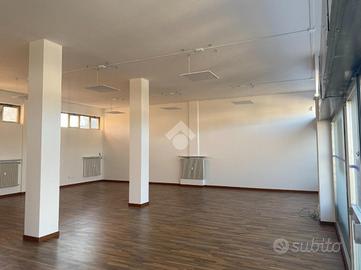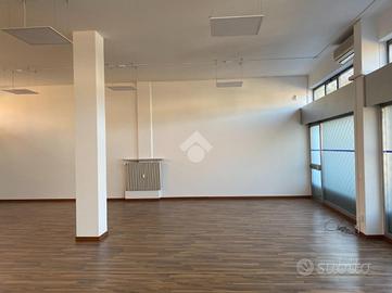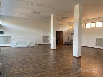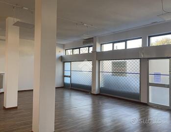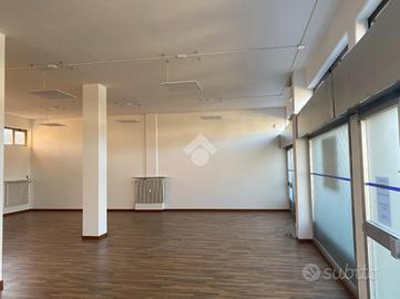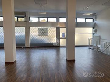 COSA SAPERE DELL'IMMOBILE Posizionato al piano terra di un immobile che sorge fronte strada, il negozio vetrinato vanta una superficie commerciale di circa 90 metri quadrati ed è dotato di magazzino interrato e servizio igienico. DESCRIZIONE E PARTICOLARITA' La superficie calpestabile del negozio si sviluppa in un unico ambiente, con presenza di una scala che porta nel magazzino interrato di circa 60 metri quadrati. Al piano terra è presente un servizio igienico con antibagno. L'ambiente interno risulta molto luminoso grazie alle tre ampie vetrine affacciate sul parcheggio frontale. Le vetrine sono opacizzate con pellicola traslucida satinata e sono munite di sistema di sicurezza mediante serranda elettrica. L'immobile è munito di impianto elettrico e di illuminazione con plafoniere design piatto a led. La pavimentazione interna del negozio è realizzata in parquet di colore scuro, mentre la pavimentazione del magazzino interrato è in piastrelle. L'immobile è dotato di raffrescamento autonomo e di riscaldamento centralizzato. La nostra proposta immobiliare risulta idonea per studi professionali, uffici di rappresentanza, ma anche per attività artigianali, oppure di vendita. UBICAZIONE E CONTESTO Il negozio sorge a Montichiari in via Cesare Battisti, via adiacente al centro storico del paese e all'arteria stradale principale. Sono presenti diversi parcheggi frontali, e nella parte posteriore del complesso ci sono posti auto coperti.