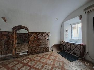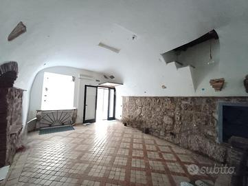 Sul corso principale del paese, proponiamo in locazione un locale commerciale su due piani. L'immobile è molto caratteristico in quanto ha un soffitto a volta, muri in pietra con nicchie e rifiniture in ferro battuto. Tramite una comoda scala rifinita in pietra, si arriva al piano seminterrato che è suddiviso in due ambienti di cui la prima parte è stata ristrutturata ed è dotata di luce esterna mentre la seconda è dotata di un bagno. Il locale è molto luminoso in qanto ha diverse finestre e anche la porta d'ingresso è dotata di una grata d'accesso molto decorata. Vista la posizione strategica vicino al parcheggio e alla Piazza del Comune, risulta essere la scela giusta per un'attività commerciale.