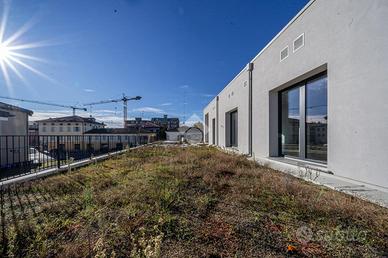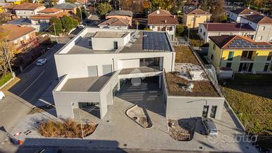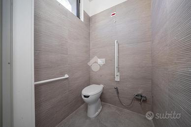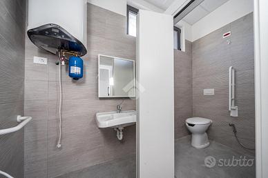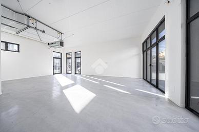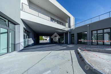 Il fabbricato di cui fa parte l'unità immobiliare è stato demolito e ricostruito post sisma e attualmente è in fase di ultimazione. La ricostruzione ha consentito di innovare le caratteristiche dell'immobile, dotandolo di finiture moderne, che rendono il complesso immediatamente riconoscibile, di un elevato isolamento termico e acustico, nonché di impiantistica completa a norma di ultima generazione; fattori che consentiranno ai futuri utilizzatori degli spazi del fabbricato di beneficiare di un'elevata vivibilità degli ambienti e di un considerevole risparmio sui consumi energetici. L'immobile è dotato di ampie vetrate, che offrono grande luminosità ai locali. L'unità è posta al piano terra del complesso, ha una superficie di 190 mq. circa calpestabili, è predisposta per l'insediamento di un bar/ristorante, e ha un annesso sovrastante terrazzo di 55 mq. circa con circostanti giardini, ideale per la realizzazione di un ampio dehors.