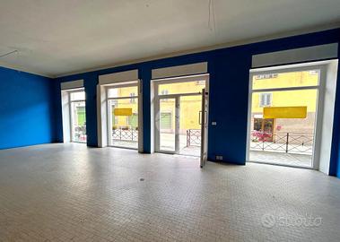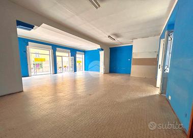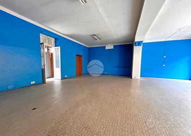 Proponiamo in affitto uno spazio commerciale di circa 55 metri quadrati situato al piano rialzato di un edifico di tre piani.