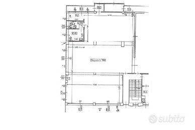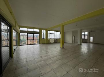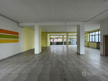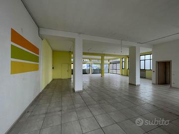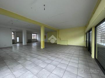 La soluzione misura circa 230 metri quadrati, attualmente si presenta come un grande open-space interrotto da pilastri ed è dotata di due servizi igienici di cui uno a norma disabili. L'ambiente si presenta particolarmente luminoso grazie alla presenza di due ampie vetrine fronte strada e di numerose finestre apribili; le saracinesche a protezione delle vetrine sono automatiche. L'immobile presenta impianti elettrico e di illuminazione e sistema di riscaldamento a radiatori. L'altezza interna è di 4,00 metri, con altezza sottotrave di 3,80 metri.