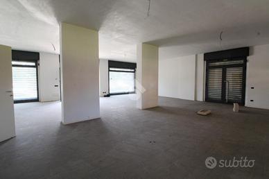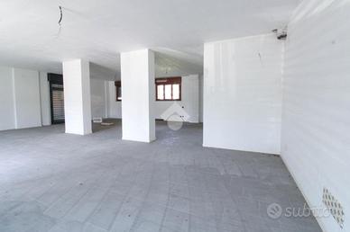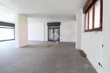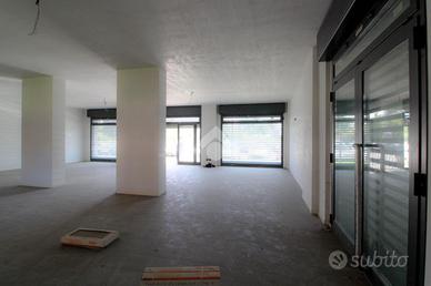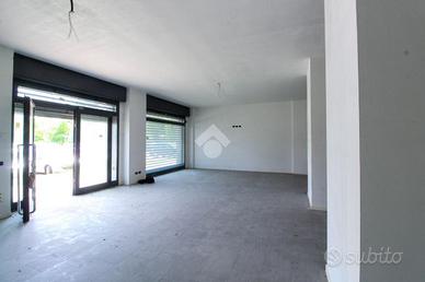La soluzione proposta in affitto dispone di una superficie di circa 125 metri quadrati interni, disposto su un unico livello al piano terra. L'immobile è composto da un'unico locale open space, è dotato di un sevizio igienico privato a norma disabili e possiede quattro vetrine che rendono l'ambiente molto luminoso. La soluzione è completa di impiantisticsa elettrica, d'illuminazione, riscaldamento e condizionamento. Completano la struttura la canna fumaria e saracinesca automatica. L'edificio risulta possedere le luci di emergenza ed essere cablato.