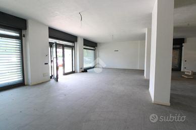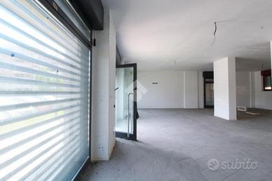 Proponiamo in locazione un negozio di circa 125 metri quadrati, situato al piano terra di una palazzina di quattro piani.