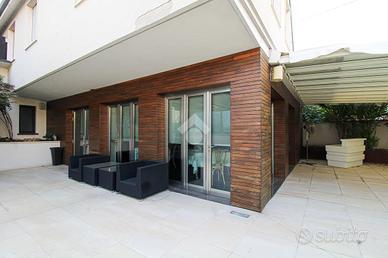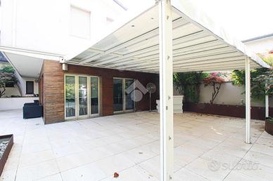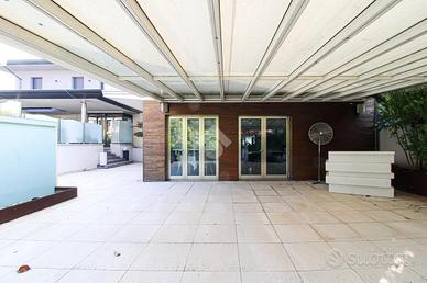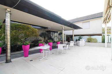 La soluzione proposta in vendita è un negozio di ampie dimensioni, che si sviluppa su più livelli per una superficie interna complessiva di circa 1.150 metri quadrati, oltre a due aree esterne esclusive di ca 1.300 e 400 metri quadrati. Al piano terra si trova un negozio completamente vetrato, della superficie di circa 450 metri quadrati, suddiviso in tre ampi locali principali. La zona commerciale è dotata di tre servizi igienici, di cui uno a norma per persone con disabilità. Al piano interrato troviamo una cantina di circa 300 metri quadrati suddivisa in cinque locali, ideale come deposito o spazio di servizio. Il primo piano è servito da scala interna e ospita una zona spogliatoio di circa 100 metri quadrati compresa di tre locali privati e un bagno. Sempre al primo piano sono presenti due appartamenti: uno di circa 80 metri quadrati e l'altro di circa 140 metri quadrati. L'intero immobile è dotato degli impianti elettrico, impianto di illuminazione, di riscaldamento di condizionamento caldo/freddo. A completare la soluzione sono due distinte aree esterne: una di circa 400 metri quadrati utilizzabile come dehor e una seconda di circa 1.300 metri quadrati adibita a parcheggio privato con un magazzino di circa 80 metri quadrati, con possibilità di cambio destinazione d'uso in negozio.
