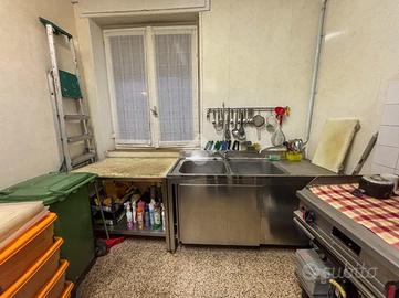Il negozio ha una superficie complessiva di circa 60 metri quadrati, di cui 20 metri quadrati adibiti a magazzino, e si trova al piano terra di una palazzina sviluppata su quattro livelli. L'immobile è suddiviso in due locali ed è dotato di servizio igienico privato con antibagno. L'ambiente risulta particolarmente luminoso grazie alla presenza di due vetrine fronte strada. La soluzione è provvista di impianto elettrico e impianto di illuminazione, entrambi da revisionare, e impianto di aspirazione fumi. È inoltre presente la predisposizione per l'impianto di condizionamento con split. Completano la proprietà un ingresso a norma per persone con disabilità e una saracinesca manuale.