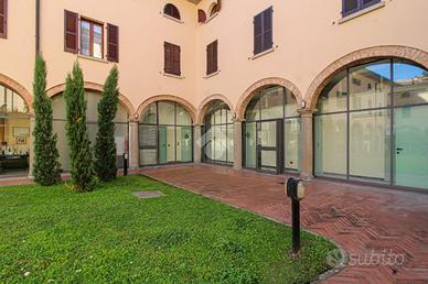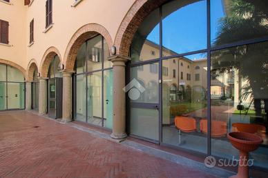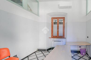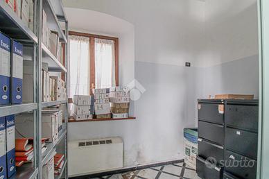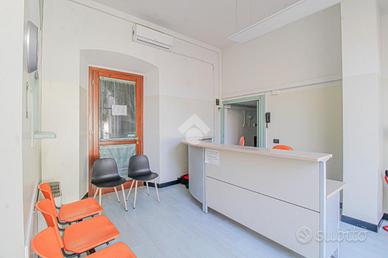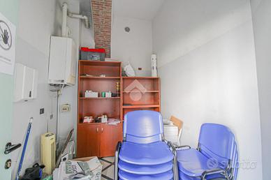 Proponiamo in locazione un negozio di circa 130 metri quadrati, situato al piano terra di un edificio di tre piani.