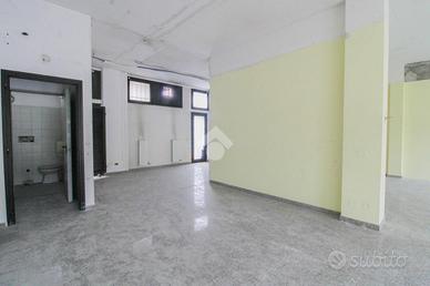 La soluzione misura, nella sua totalità, circa 90 metri quadrati, è divisa in tre locali con annesso servizio igienico. L'ambiente si presenta luminoso grazie alla presenza di due ampie vetrine. L'immobile presenta installati l'impianto elettrico, di illuminazione, impianto di riscaldamento e condizionamento. Il negozio è cablato e possiede l'uscita di emergenza. Esternamente la struttura gode di circa una ventina di posti auto pubblici.