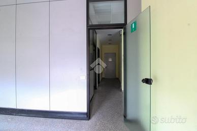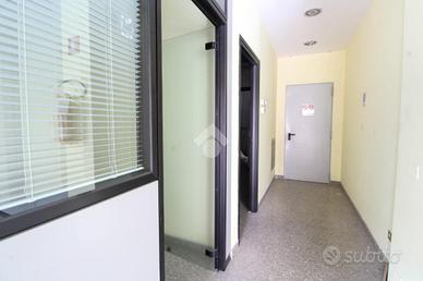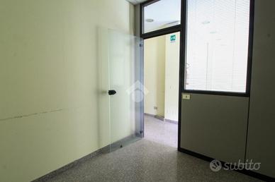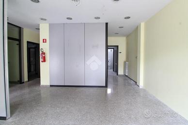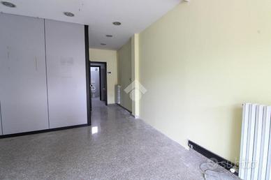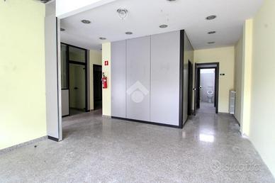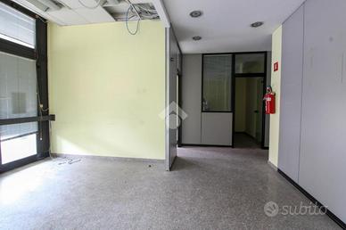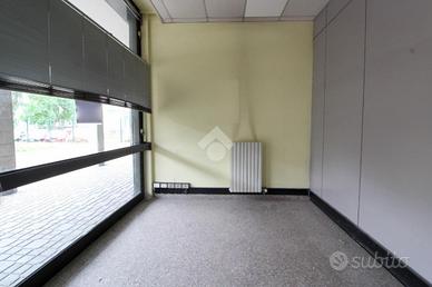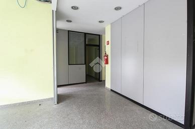 La soluzione misura circa 45 metri quadrati ed è situata al piano terra di una struttura condominiale che si sviluppa su tre livelli. Il locale è attualmente un open space e possiede un servizio igienico. L'ambiente si presenta luminoso grazie alla presenza di due ampie vetrine. L'immobile è dotato dell'impianto di riscaldamento e condizionamento, l'impianto elettrico e quello di illuminazione.