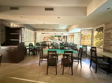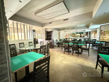 MADONNA ALTA - ampio locale commerciale di circa 350 mq al piano terra, ideale per attività di ristorazione o altre attività commerciali che necessitano di grandi spazi. L'immobile è suddiviso in più ambienti funzionali, tra cui ingresso con reception, cucina finestrata completamente attrezzata e dotata di cappa di aspirazione, e ampia sala principale. La disposizione interna, organizzata in quattro locali distinti, permette una gestione ottimale degli spazi e la possibilità di adattarli alle proprie esigenze operative. La zona principale è luminosa e accogliente, con area tavoli e un'area privé separata da elementi in bamboo che garantiscono privacy e un'atmosfera confortevole per la clientela. Completano la proprietà bagno per il personale e bagno clienti. La posizione è strategica, con buon passaggio e flusso costante di persone, rendendo l'immobile una soluzione interessante per avviare o ampliare la propria attività. È inoltre possibile l'affitto a 2.500 € mensili. La zona è ben servita e offre possibilità di parcheggio nelle immediate vicinanze, facilitando l'accesso alla clientela.