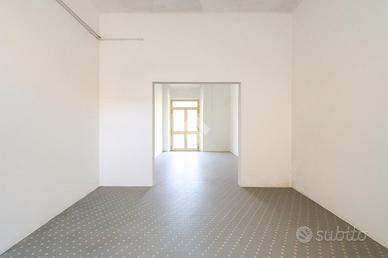 Il primo ingresso, da Via Rook, conduce all'ambiente principale, ampio e luminoso, di 38 mq, con un'altezza di 3,80 m. Da qui, tramite una porta tagliafuoco, si accede a un laboratorio finestrato di 37 mq, dotato di accesso diretto alla resede esclusiva.
