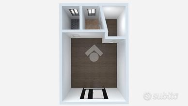 L'ingresso ci accompagna nel locale principale di 36 mq, completo di vetrina fronte strada e di predisposizione per impianto idrico.