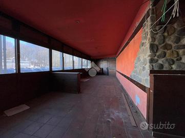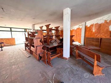 Il piano terra, ad uso commerciale (ex Pub) e con una superficie complessiva di 320 mq circa, è costituito da ingresso, più 2 vani di ampia superficie, completi da zona cucina e corredati da 2 servizi igienici.