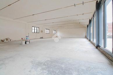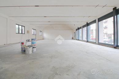 Il negozio ha una superficie di circa 250 metri quadrati e si sviluppa in un unico locale open space. La struttura risulta molto luminosa grazie alla presenza di sette vetrine. Dal momento in cui l'immobile viene bloccato, la proprietà si occuperà di installare l'impianto elettrico e di illuminazione, un servizio igienico e il pavimento base. Il fabbricato è munito di canna fumaria e inoltre è caratterizzato dalla posizione ad angolo che ne permette l'accesso tramite doppio ingresso.