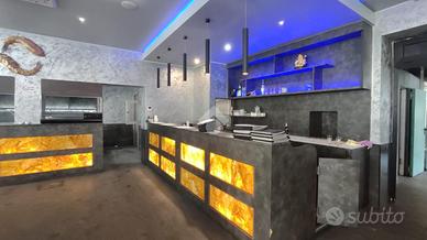 Al piano terra, per una superficie di circa 300 mq, si trova l'area principale destinata all'attività aperta al pubblico, completamente ristrutturata e in ottimo stato manutentivo.