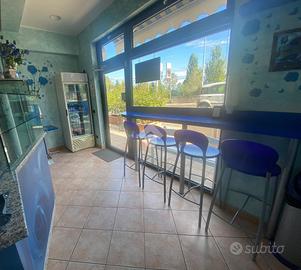 Pizzeria d'asporto con magazzino, zona preparazione, laboratorio, bagno e antibagno più plateatico esterno.
