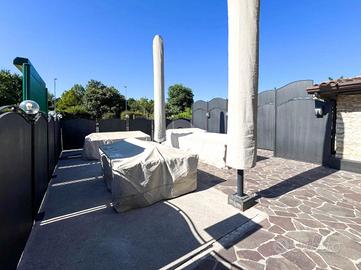 A completare la soluzione è presente uno spazio esterno ad uso esclusivo e un ampio piazzale di parcheggio a disposizione della clientela.