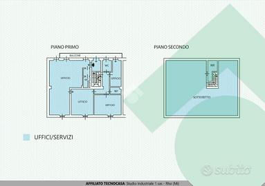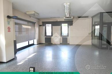 RHO - CENTRO, UFFICIO/NEGOZIO DI 535 MQ CON CORTILE PRIVATO DI 280 MQ - Zona commerciale/residenziale. Palazzina a schiera. Parcheggio privato. Cortile privato 280 mq. Due ingressi da strada. 2 open-space, 1 locale mensa, 1 locale accoglienza e altri sei locali adibiti ad uso ufficio. Pareti mobili. 4 Servizi igienici con doccia. Impianto Illuminazione. Impianto Elettrico. Riscaldamento autonomo. Aria condizionata. Telefono.