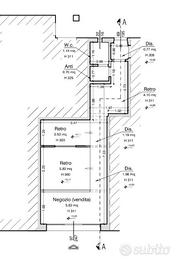 Il locale è composto da ingresso su corte comune in parte ad uso esclusivo di grande visibilità, sfruttabile per esigenze pubblicitarie.