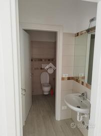 L'interno, l'open space servito da due bagni con annessi anti bagno, può essere diviso anche con pareti in cartongesso per creare più ambienti di lavoro tutti illumiati da luce naturale e dotati ti riscaldamento e aria condizionata con impianto di allarme e sorveglianza.