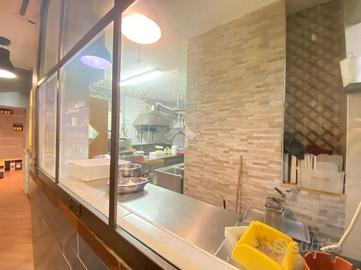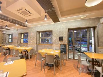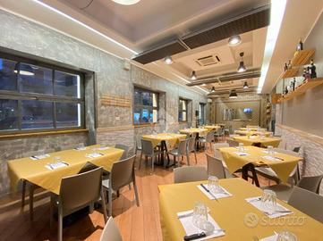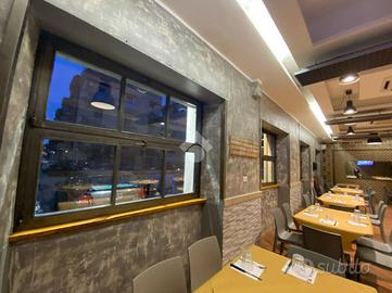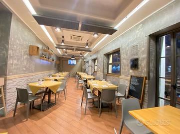 Il locale è composto da un unico grande spazio di 50 mq dedicato alla sala, mentre il resto della superficie di ulteriore 55 mq è dedicato alla cucina e ai bagni garantendo funzionalità e comodità per clienti e personale.