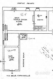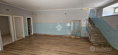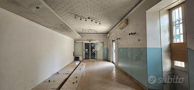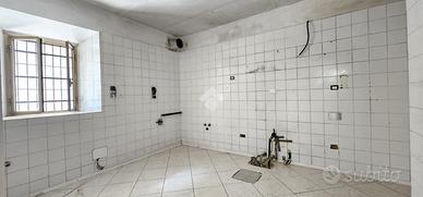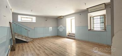 troviamo 40mq unico ambiente al piano terra finestrato con 3 vetrine collegato attraverso scala interna al piano sottostante di 60mq diviso in due ambienti e servizio