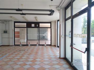 La soluzione gode di elevata luminosità in quanto presenta la facciata completamente vetrinata ideale per cartellonistica e vetrofanie che permette l'accesso al locale.