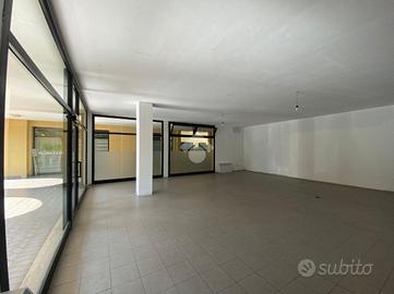 Il negozio dispone di quattro grandi vetrine, due delle quali frontali che consentono un comodo accesso all'immobile e due laterali.