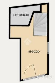 Il piano terra di circa 50 mq, con ottima visibilità e affaccio diretto sulla via, si presta perfettamente come spaio principale a contatto con il pubblico, mentre il piano inferiore di circa 150 mq ospita ulteriori spazi operativi oltre al servizio igienico.