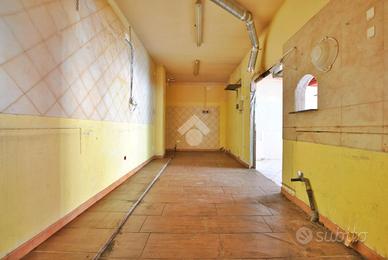Il retro si estende su una superficie di circa 20 metri quadrati e si affaccia sull'area precedentemente descritta. Un lungo corridoio conduce all'ingresso privato su Vicolo Caligaris e all'accesso a due ripostigli, rispettivamente di 6 e 8 metri quadrati circa. L'intero spazio commerciale ha un'altezza di 2,8 metri ed è accessoriato di servizi igienici.