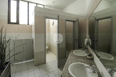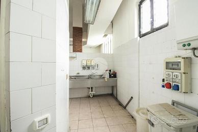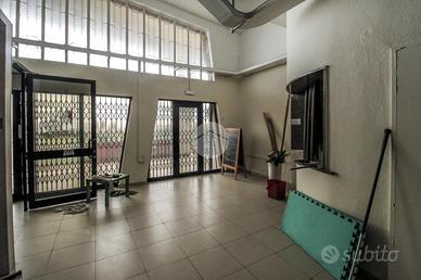 Il lotto complessivo misura circa 1.100 metri quadrati, di cui 100 metri quadrati circa di magazzino e 150 metri quadrati circa adibiti a cantina al piano interrato, il tutto disposto lungo un'unica campata al piano terra di un edificio di due piani. Internamente la struttura, a norma per l'accesso disabili, raggiunge un'altezza di circa 4 metri, data la presenza di controsoffitto, e presenta ben quattro vetrine, complete di saracinesca manuale, le quali donano all'ambiente visibilità esterna e maggiore luminosità. L'immobile è suddiviso in circa cinque locali con annessi ben otto servizi igienici privati, alcuni dei quali dotati di ventilazione meccanica. Il negozio dispone di impiantistica elettrica e d'illuminazione, nonché di condizionamento autonomo e di una predisposizione per l'impianto di riscaldamento. Troviamo inoltre un sistema antincendio composto da antincendio a idranti, luci e relativa uscita d'emergenza; completa la soluzione l'aspirazione fumi e relativa canna fumaria. La proprietà risulta possedere comodo doppio ingresso con annessa portineria nell'ingresso principale.