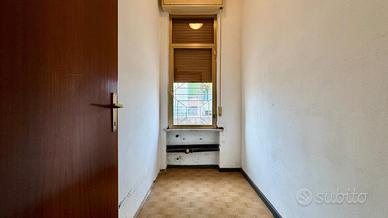 Una porta introduce al disimpegno, che divide gli ambienti sul retro caratterizzati da un ripostiglio, il bagno finestrato ed una ulteriore stanza.