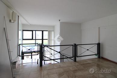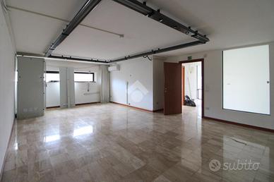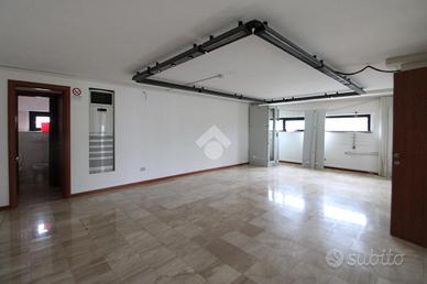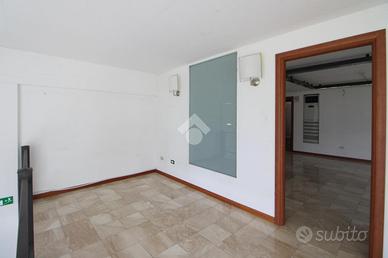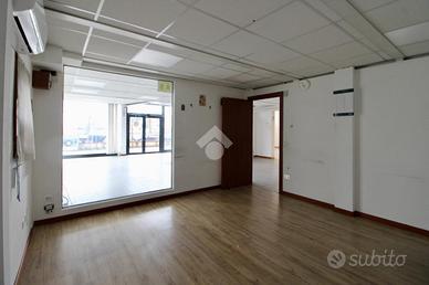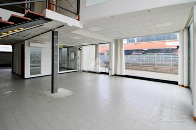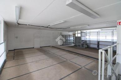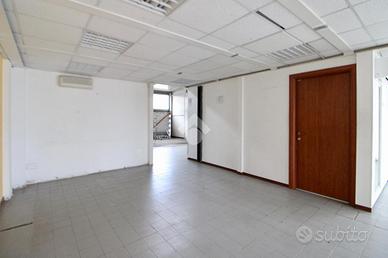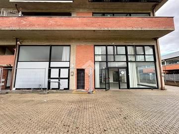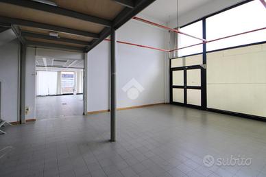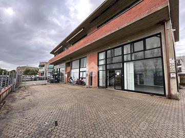 Dal primo ingresso, dotato di vetrina fronte strada, accediamo alla prima porzione composta da un ampio open-space dotato di ufficio e di un magazzino completo di portellone industriale.