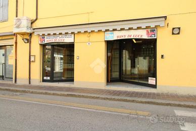 Proponiamo in vendita spazio commerciale di circa 67 mq con ingresso e due vetrine affacciati sulla via principale del paese. La posizione centrale lo rende molto visibile, ideale per attività di vendita ma anche per ufficio di rappresentanza. Internamente si sviluppa in un unico ambiente openspace, dotato di bagno con antibagno e ripostiglio. Al negozio si accede mediante portico di proprietà. Soffitti con travi in legno e particolari in mattoni a vista. Dispone di riscaldamento autonomo con termoconvettori e impianto di aria condizionata. Le vetrate sono in alluminio, con vetro antisfondamento, chiuse da serrande elettriche e protette da tendoni motorizzati. Completo, inoltre, di allarme con videosorveglianza, illuminazione esterna, insegne luminose, impianto satellitare e digitale e canna fumaria. Privo di spese condominiali. L' immobile è già libero e l'ottimo stato di manutenzione ne permette l'utilizzo da subito.