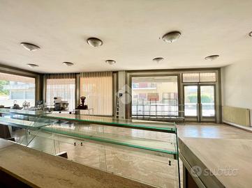Dotato di 4 ampie vetrine sui due lati della strada che permettono un ottima visibilità e luminosità naturale