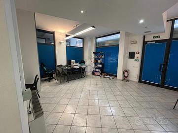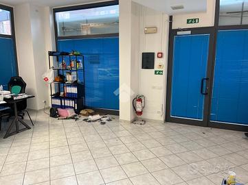 L'immobile si sviluppa su 66 mq divisi da pareti in cartongesso con una vetrina che si affaccia sul lato strada principale di un marciapiede rialzato.