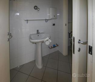 La struttura proposta in vendita è situata al piano terra di un edificio sviluppato su due livelli e dispone di una superficie calpestabile di circa 80 metri quadrati, di cui 25 metri quadrati di soppalco. Internamente, l'immobile si presenta come suddiviso in quattro stanze rese particolarmente luminose grazie alla presenza di quattro vetrine con affaccio esterno. Il locale è dotato dell'impianto elettrico, di illuminazione, di riscaldamento e di condizionamento. A completare la soluzione è la presenza di un servizio igienico privato.
